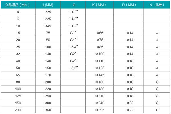 | DN 4 | 0.04~0.25 | 0.04~0.4 | 6.3 | 12、16、25 |